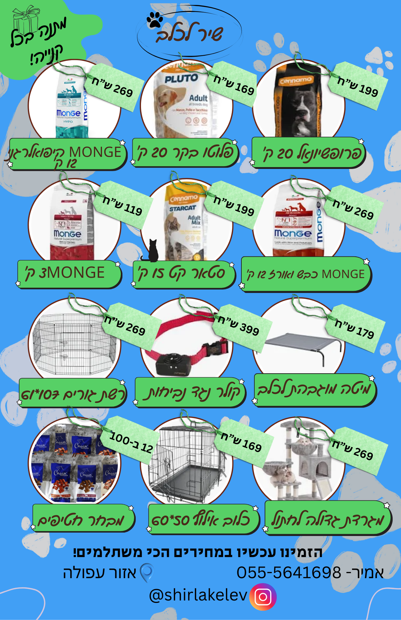 אילוף כלבים, פנסיון, ציוד ומזון לבעלי חיים